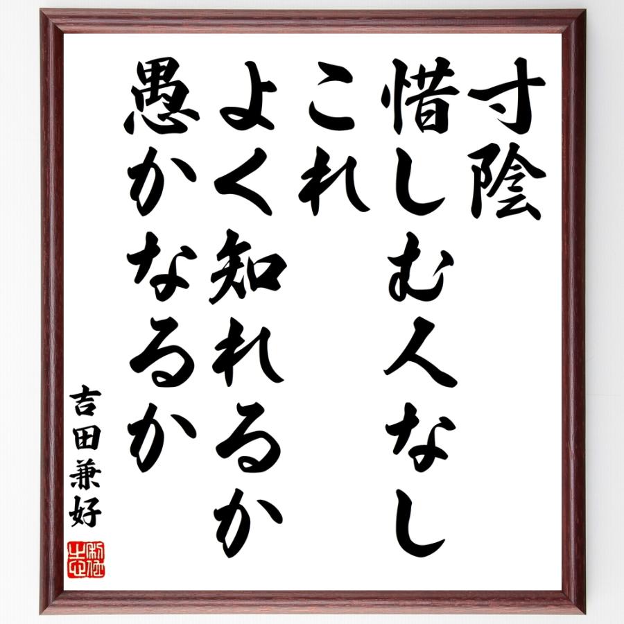 吉田兼好の名言書道色紙 寸陰惜しむ人なし これ よく知れるか 愚かなるか 額付き 受注後直筆 Z0623 直筆書道の名言色紙ショップ千言堂 通販 Yahoo ショッピング
